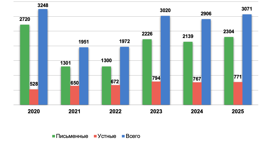 За 2025 год – 3071 обращений по сравнению с 2024 годом – 2906 обращений.